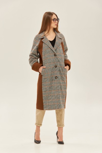 Демисезонное пальто Mila Nova ПВ-148 серое+терракот