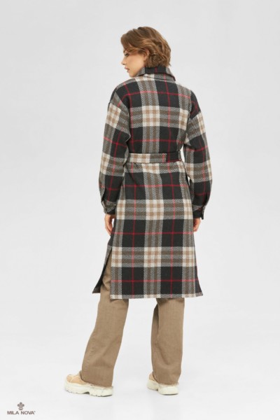 Демисезонное пальто Mila Nova ПВ-248 шоколадная клетка