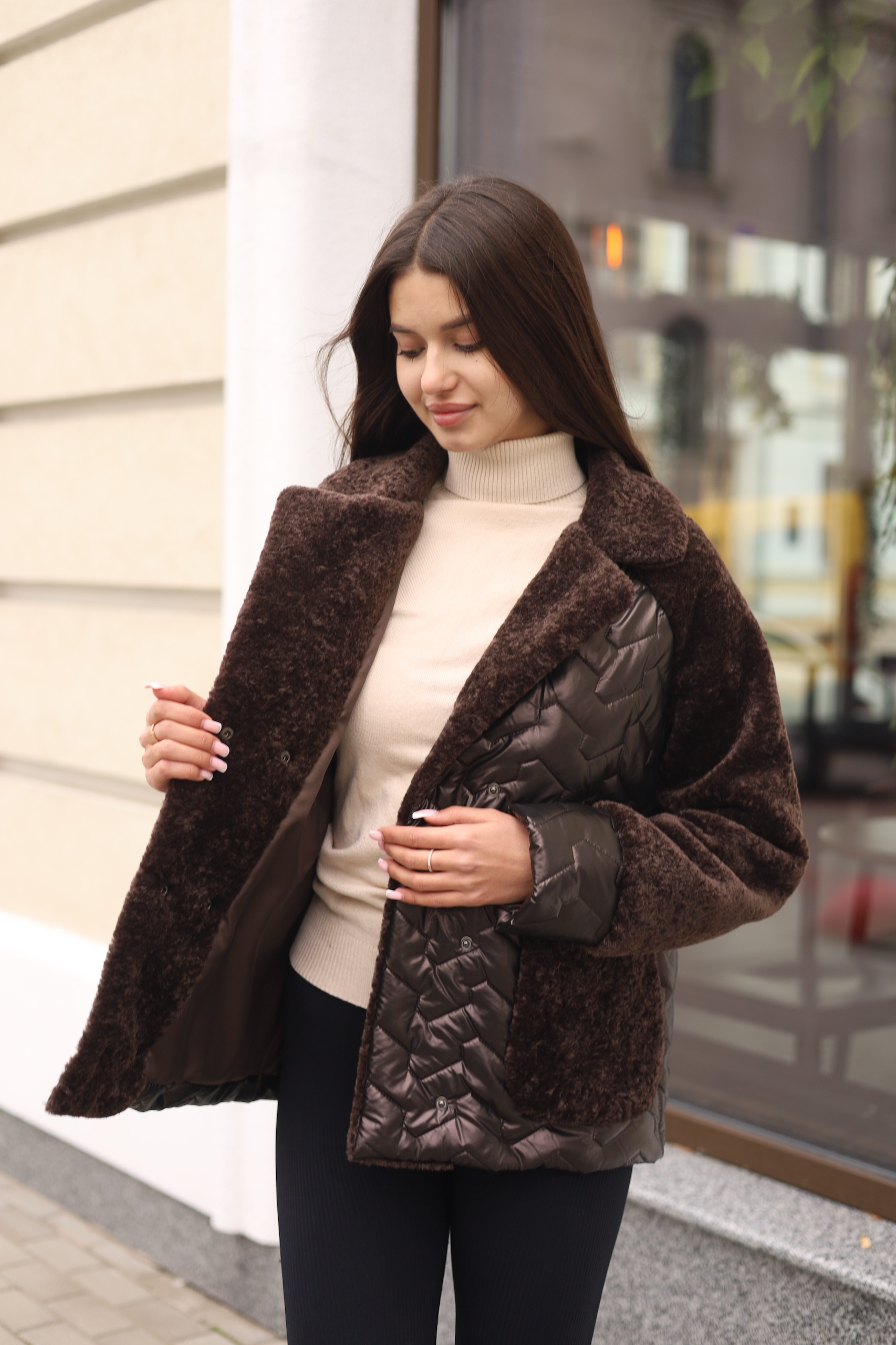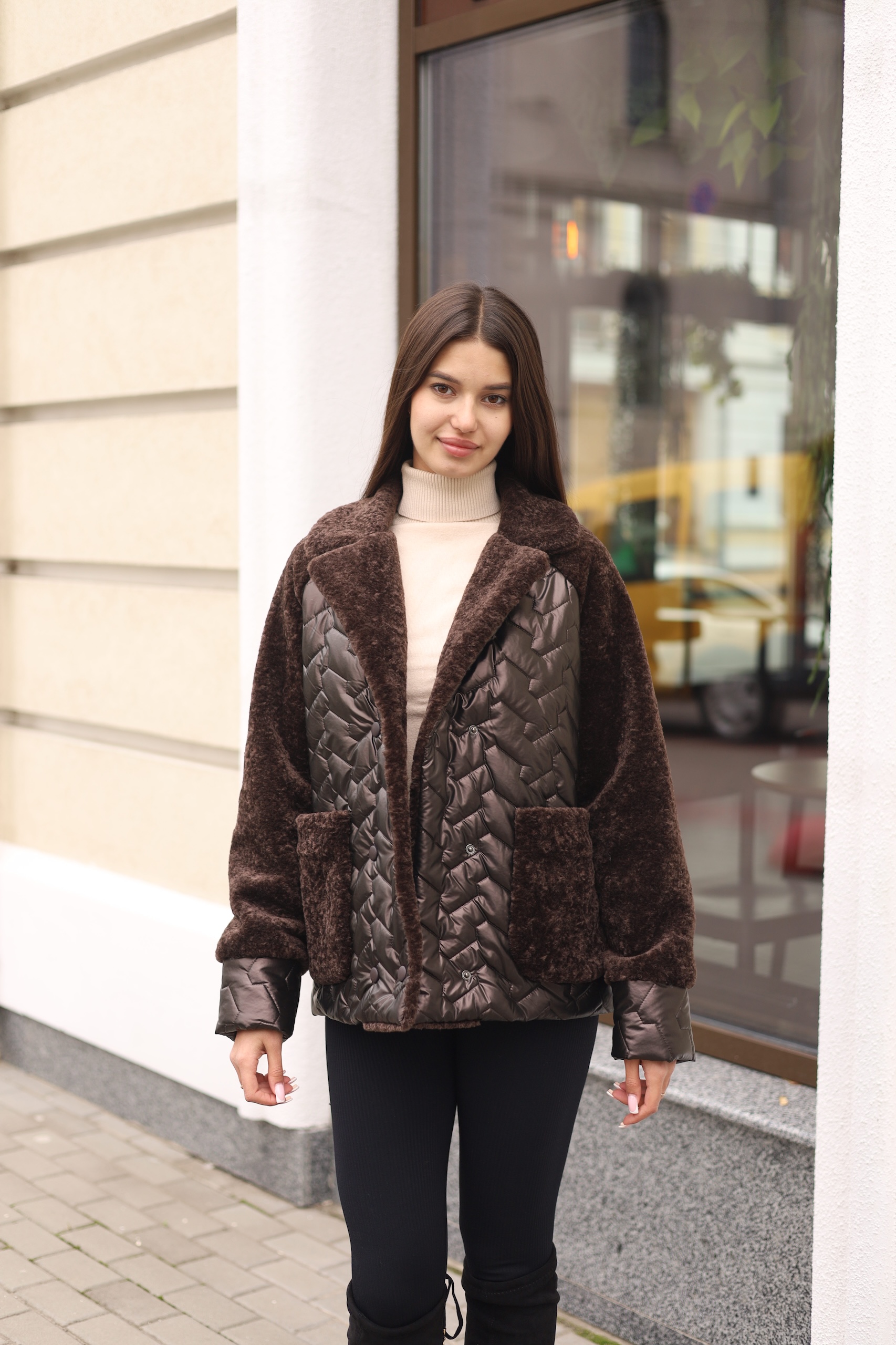 Комбинированная короткая куртка из стеганной плащевой ткани и эко меха высокого качества.