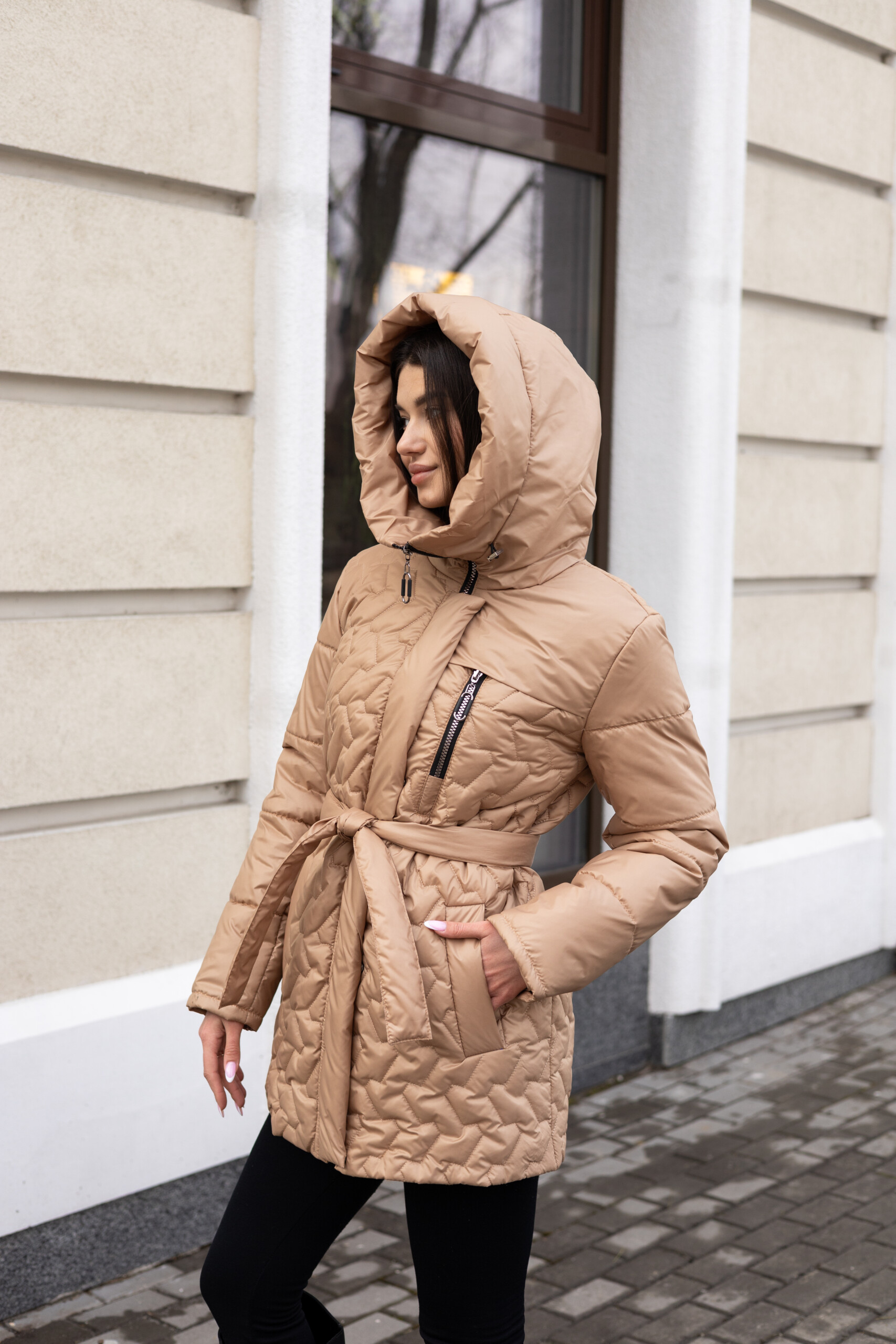 Удлиненная модель куртки с капюшоном и поясом для твоих весенних образов.