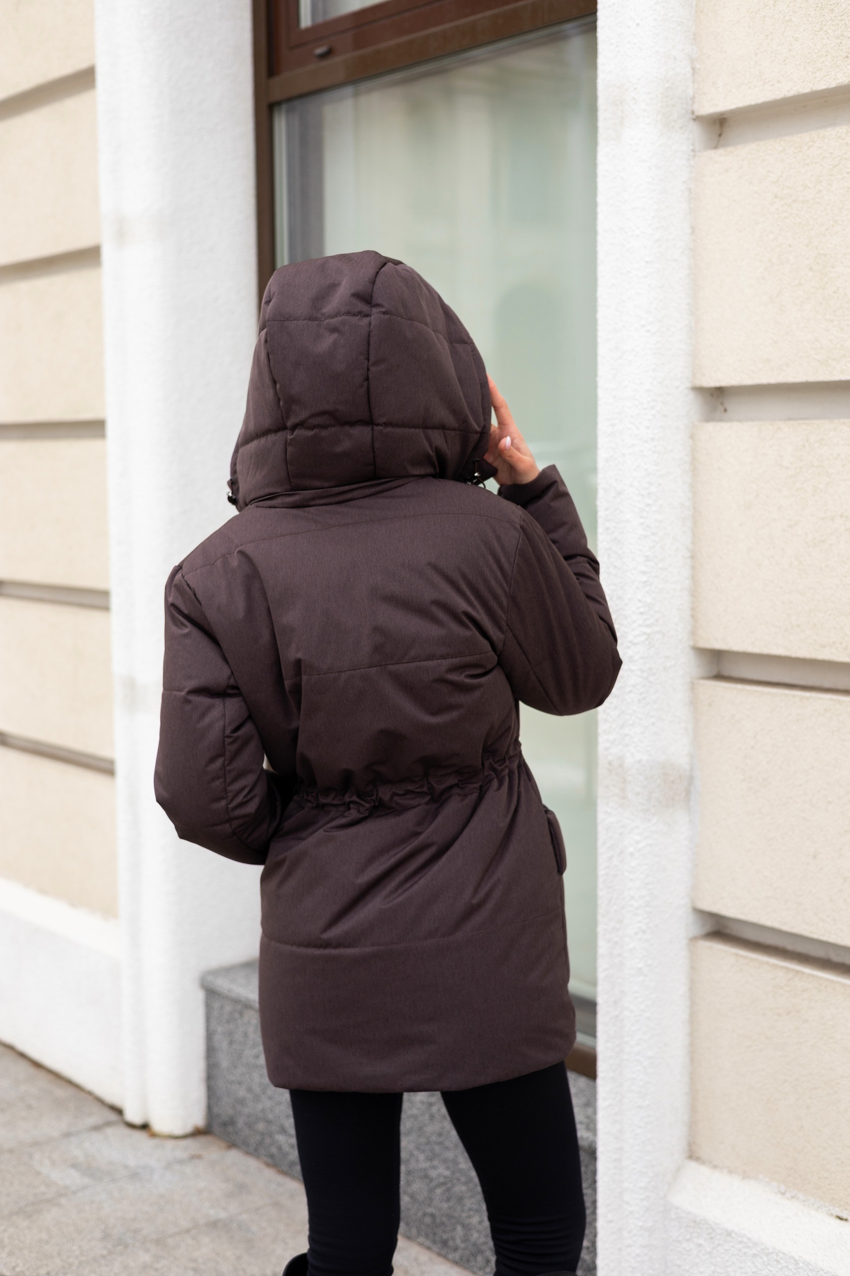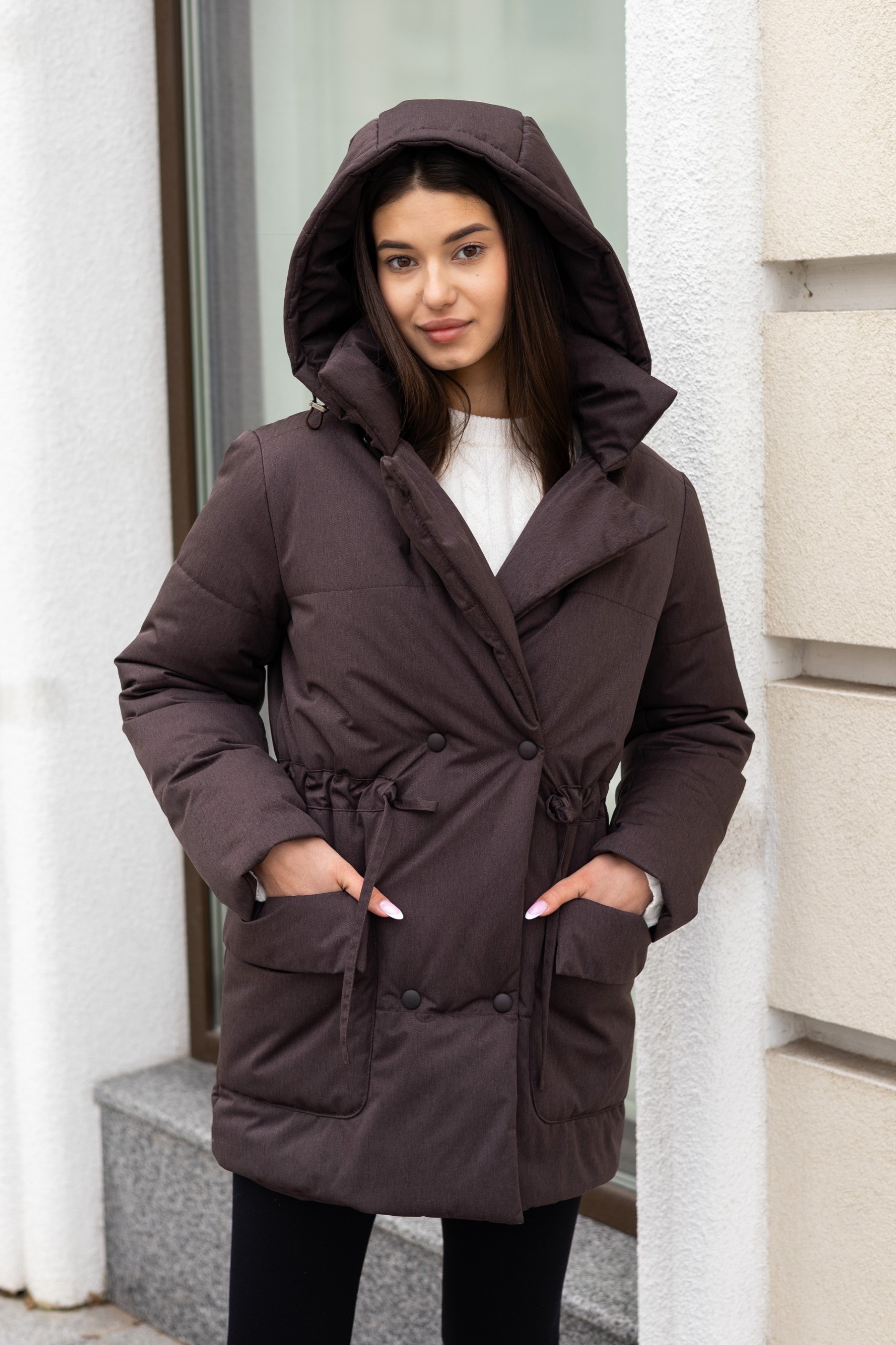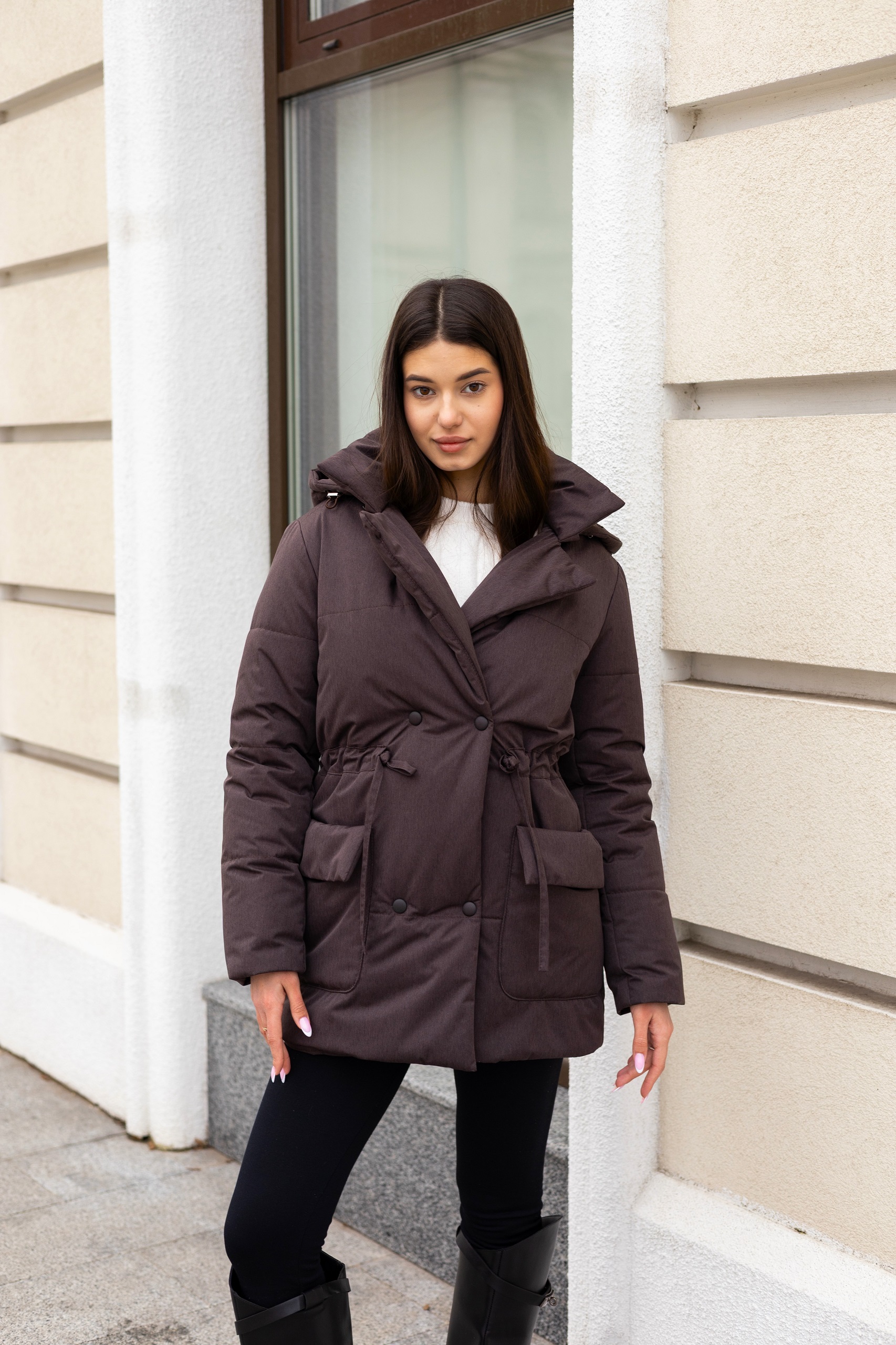 Выполнена из фактурной плащевой ткани, на подкладке, с утеплителем.