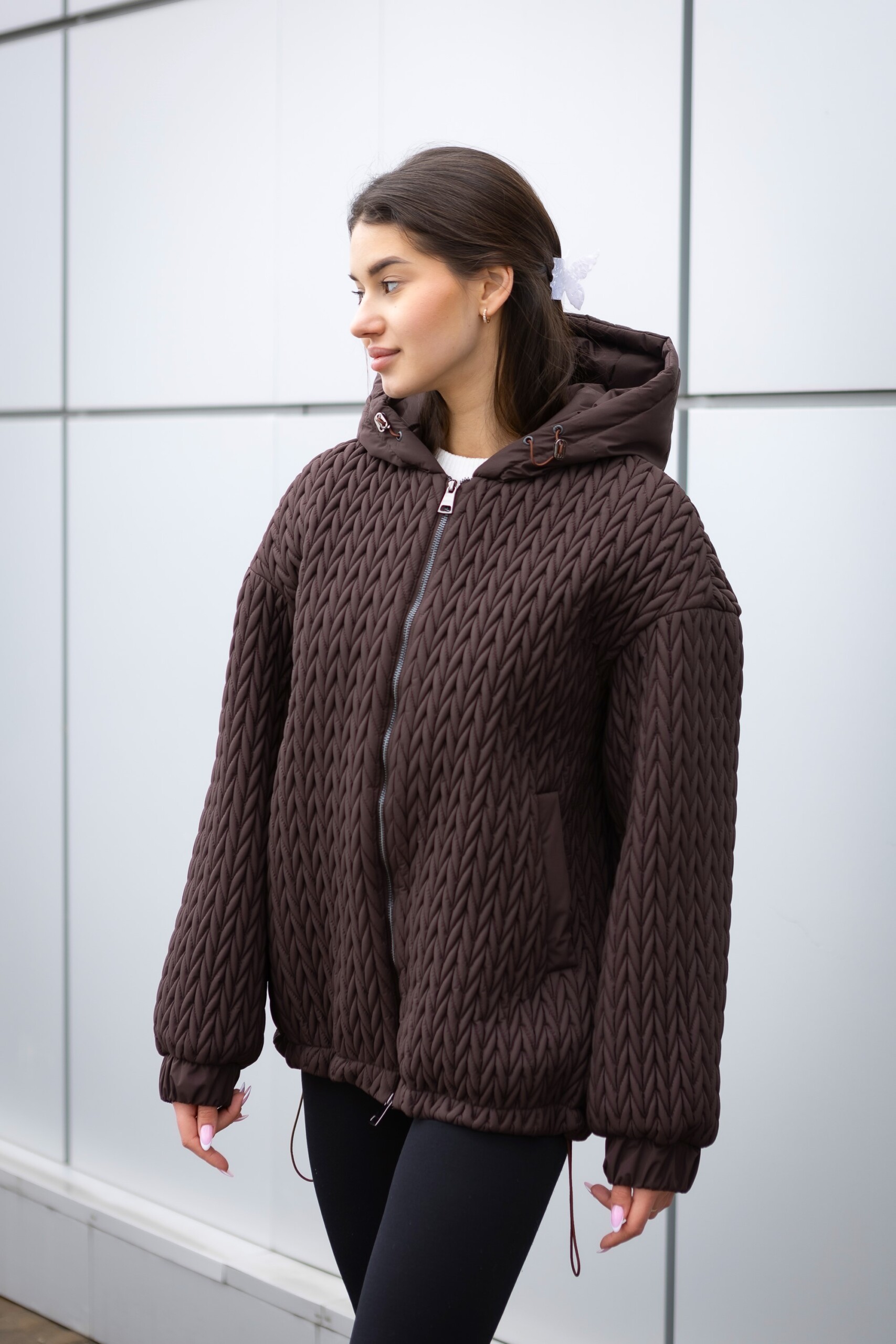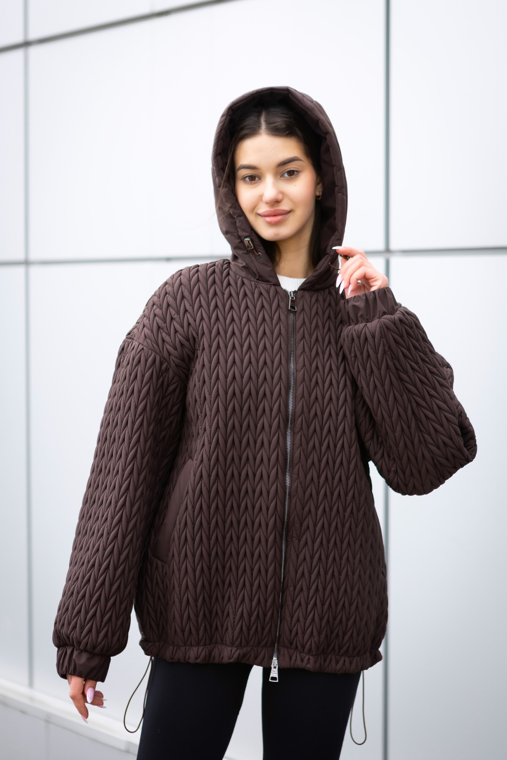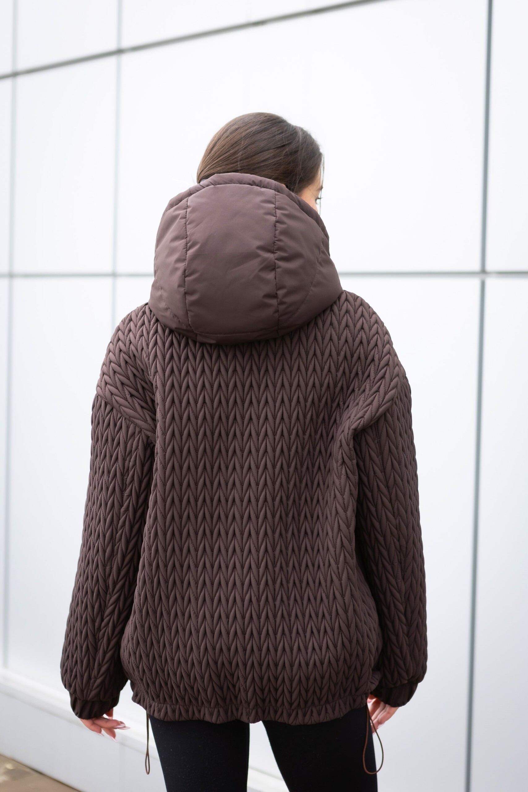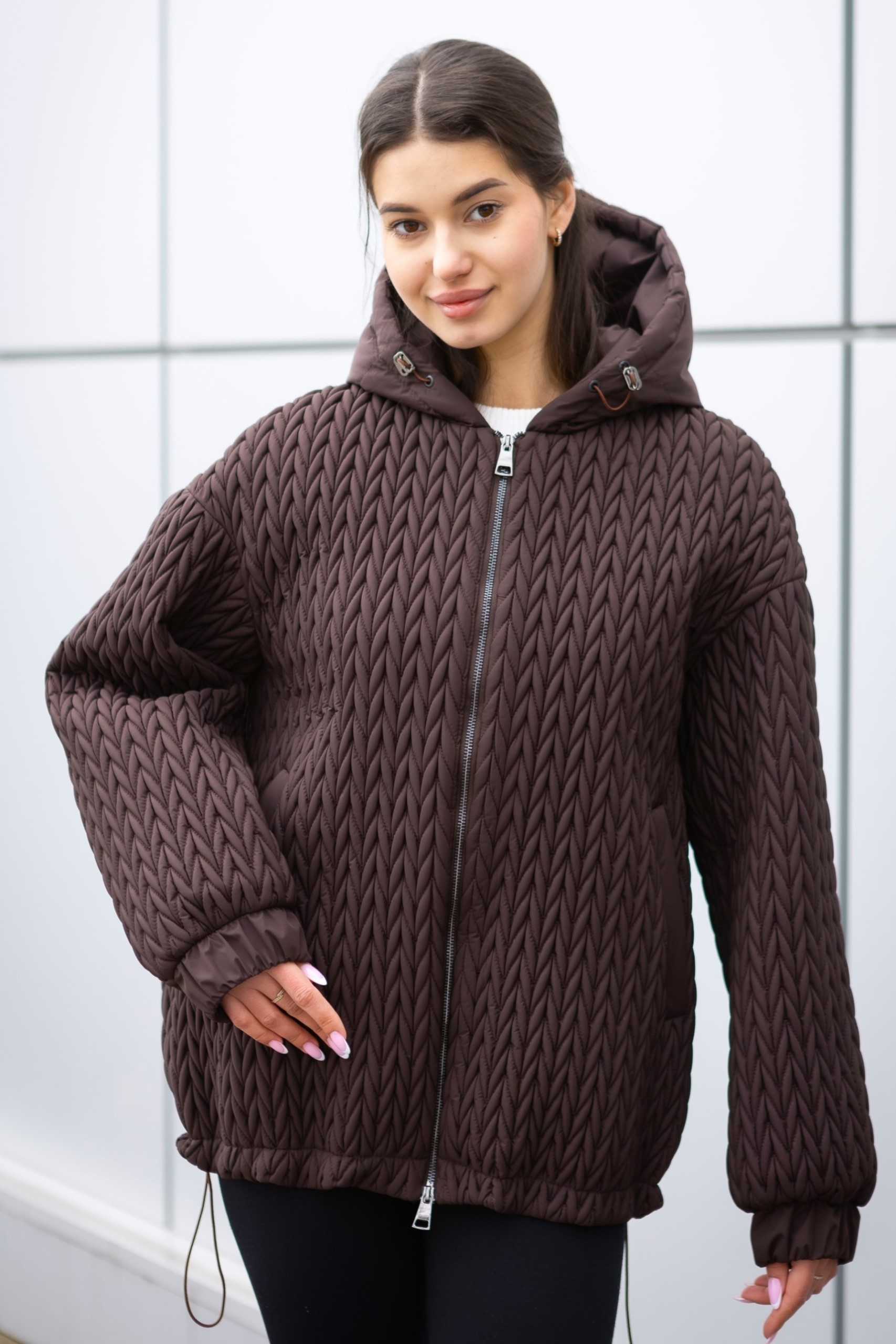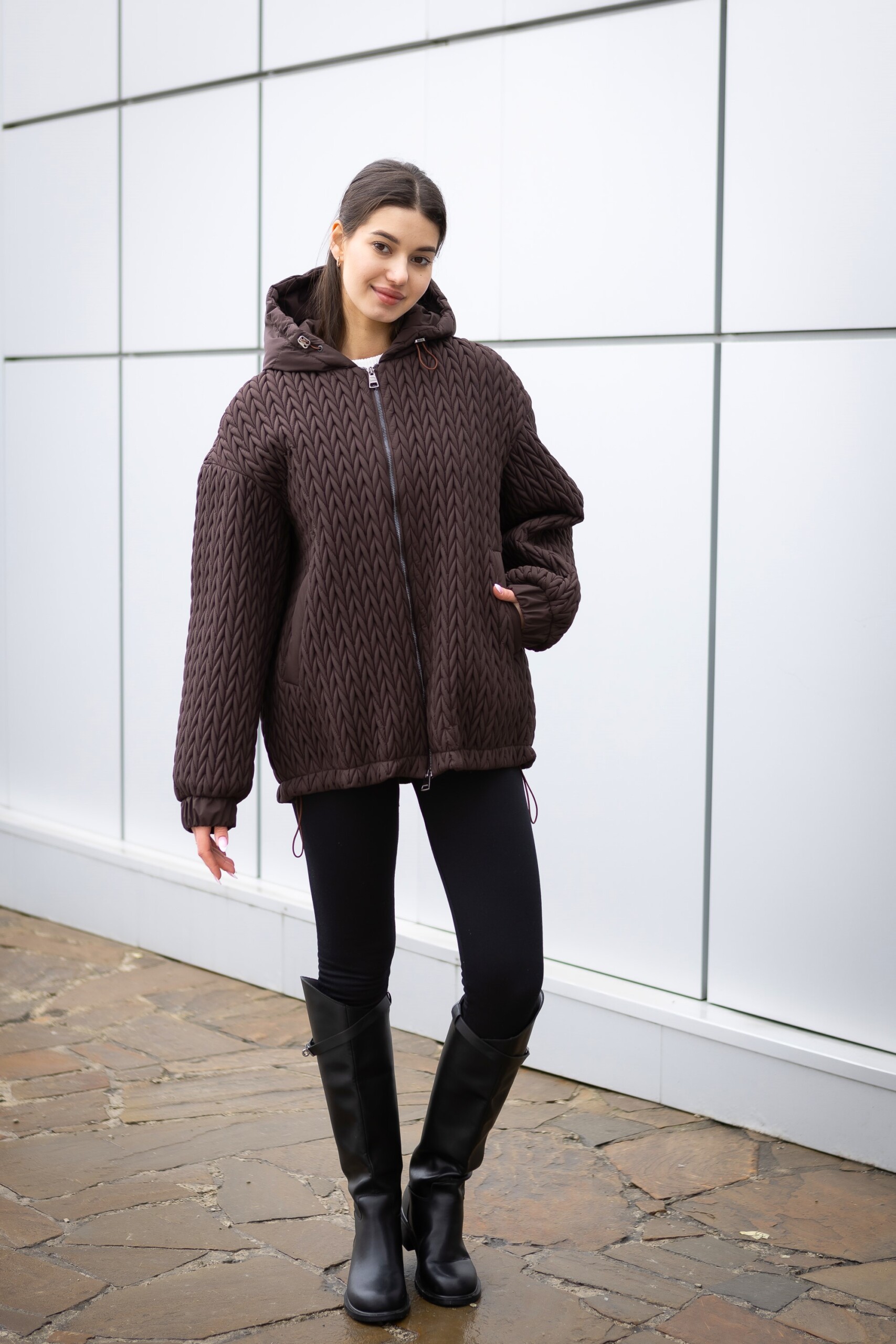 Куртка с капюшоном из плащевой ткани с оригинальной стежкой.