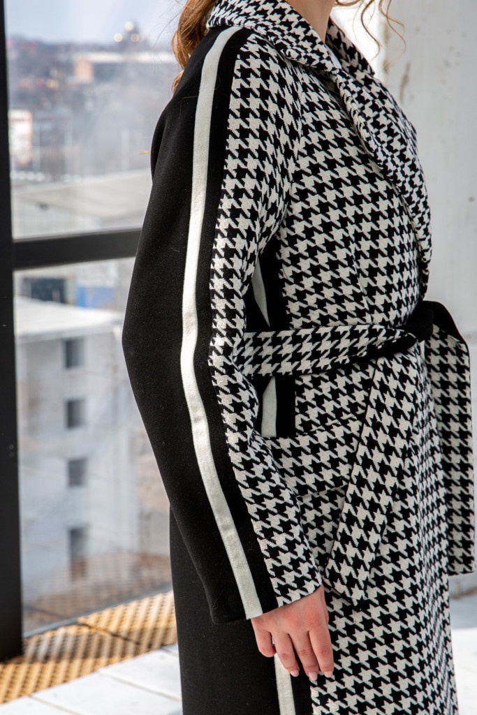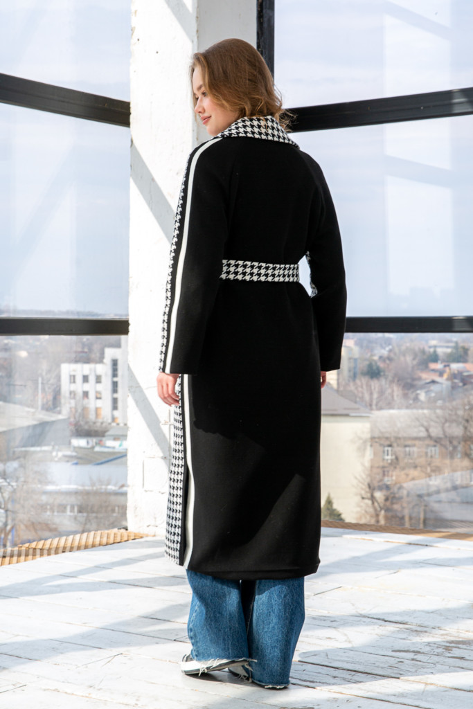 Комбинированное 3-х цветное пальто из кашемира с разрезами по бокам.