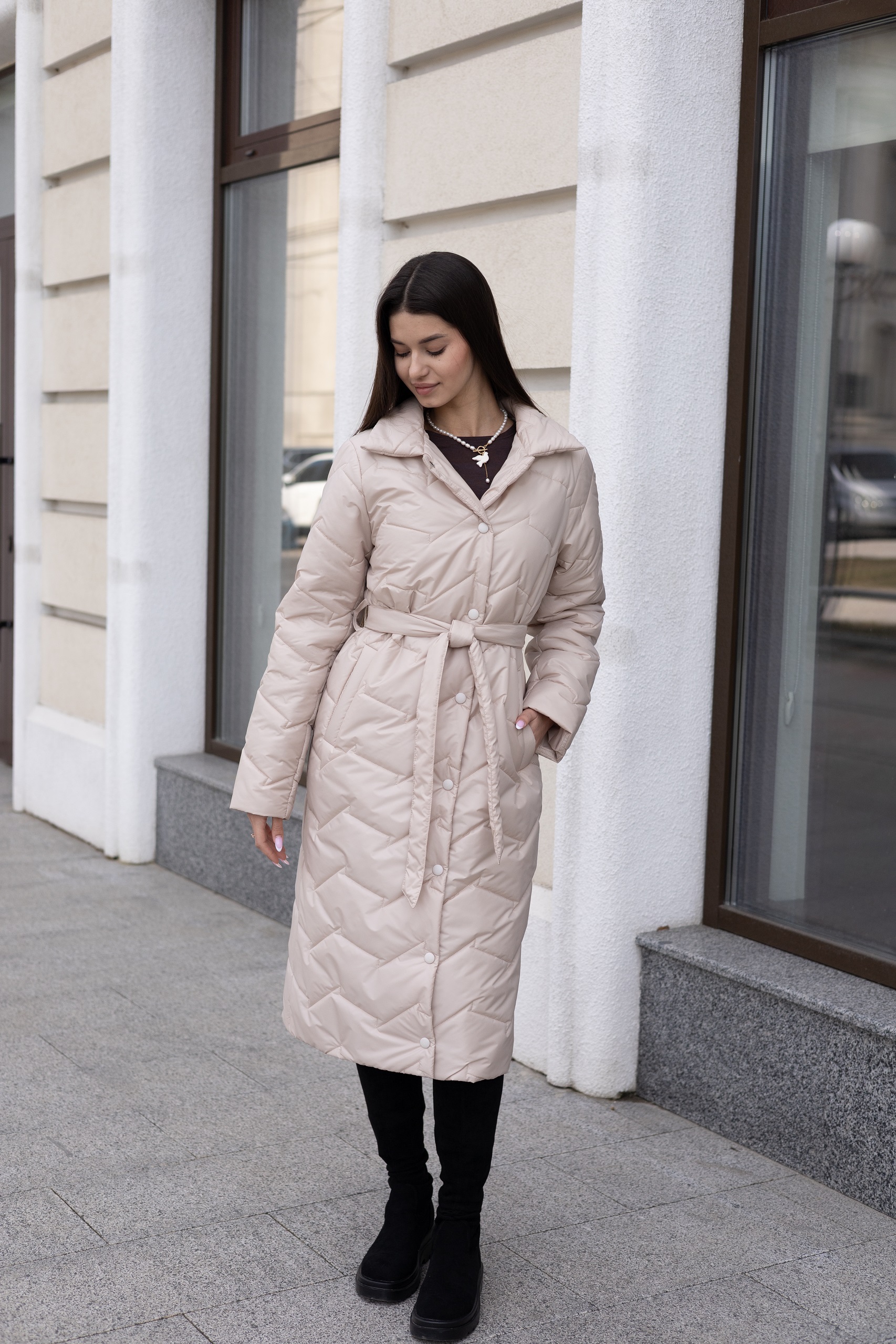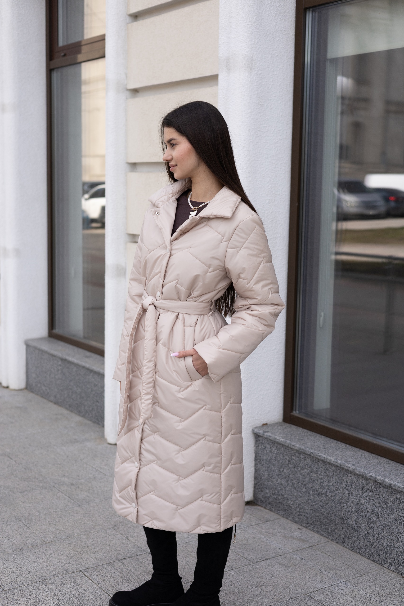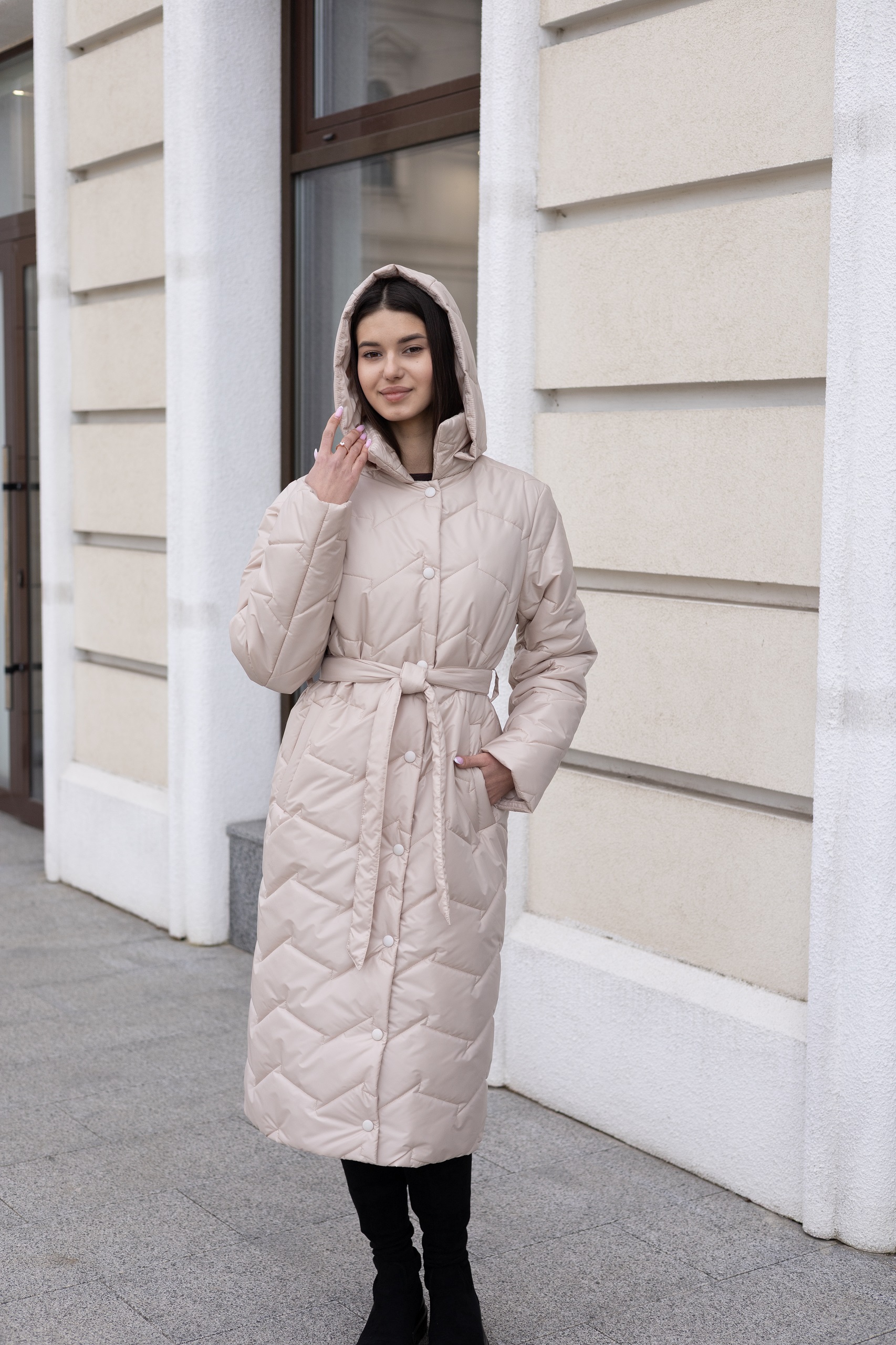 Демисезонный стеганый плащ из водоотталкивающей плащевой ткани с капюшоном. Капюшон съемный. Плащ удобный и практичный , подходит под любой стиль обуви. В нем будет комфортно в любую погоду