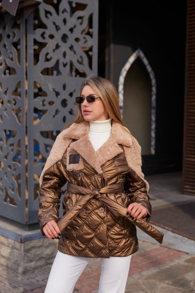 Демисезонная куртка Mila Nova К-367 кемел+шоколад