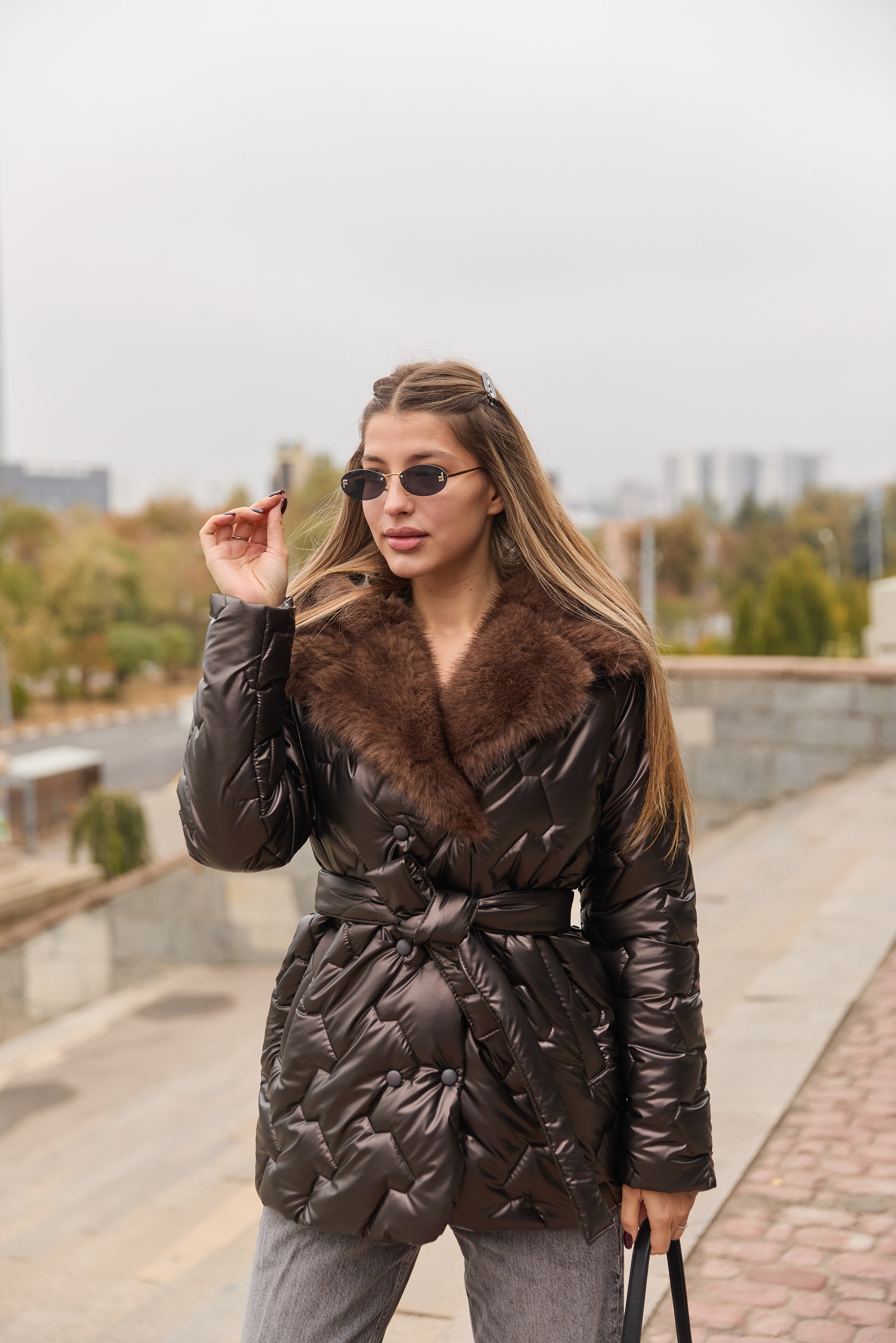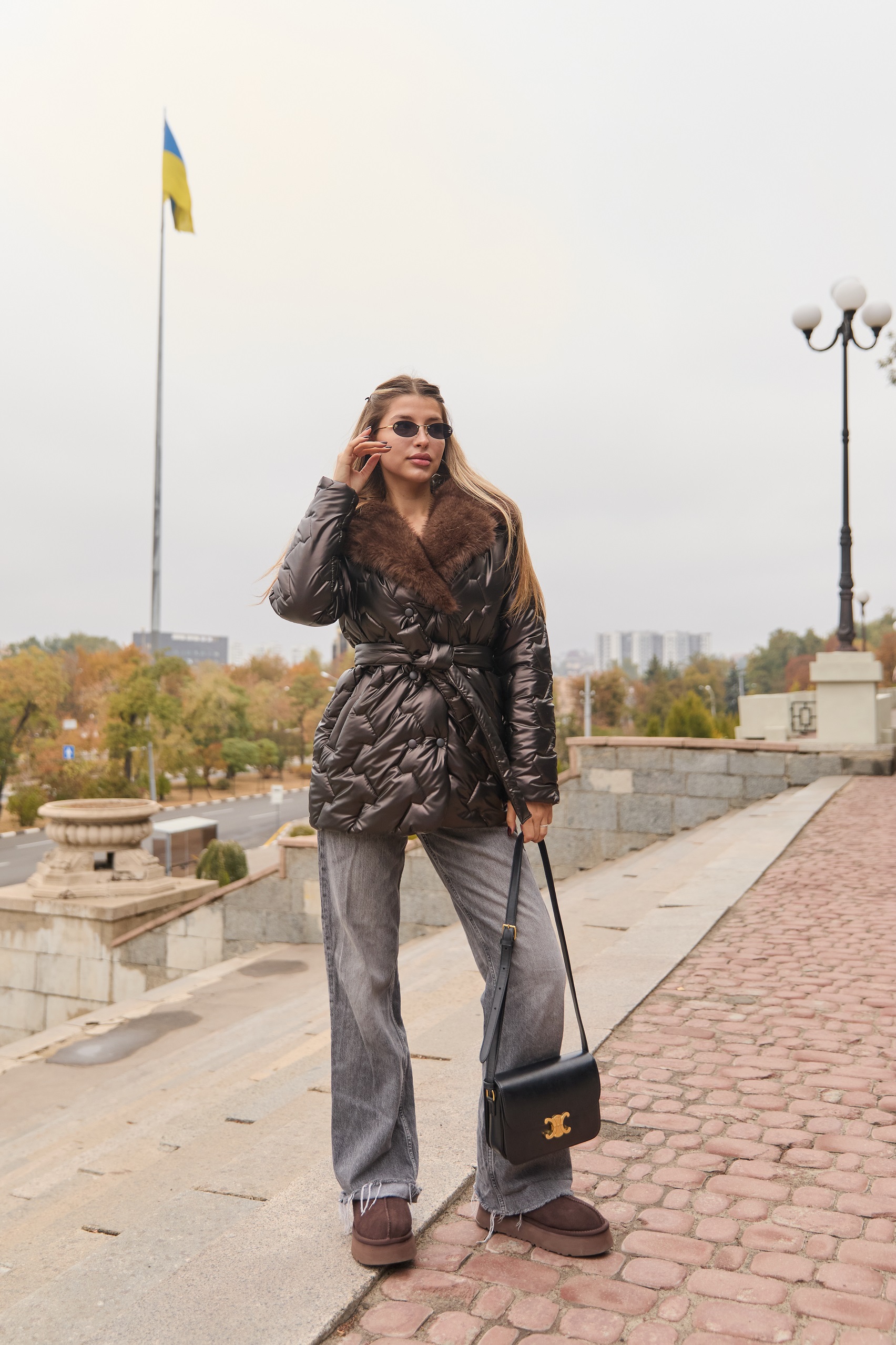 Зимняя куртка с водоотталкивающей плащевкой и эко мехом на капюшоне.
