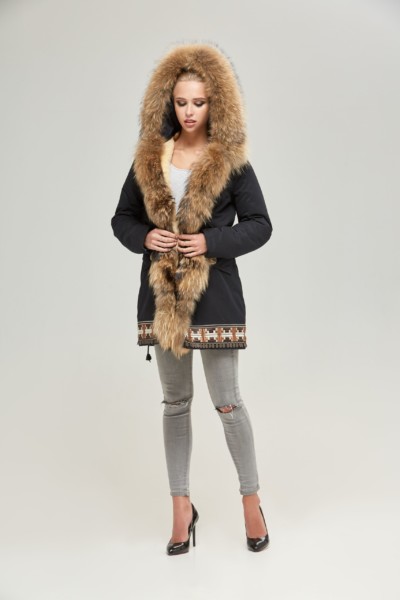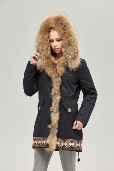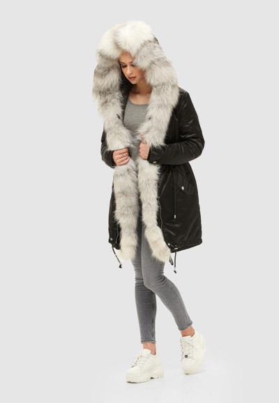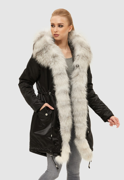 Зимняя парка Mila Nova П-88 черный+ белый мех