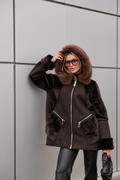 Зимняя дубленка Mila Nova Д-234 шоколадный