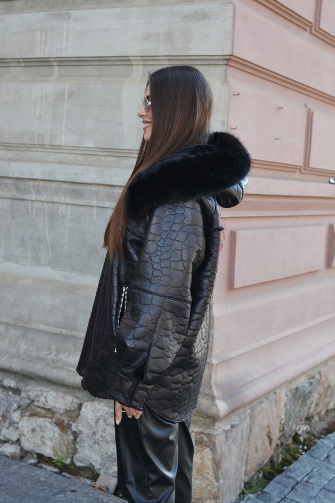 Модель на молнии, с капюшоном украшенным эко мехом.