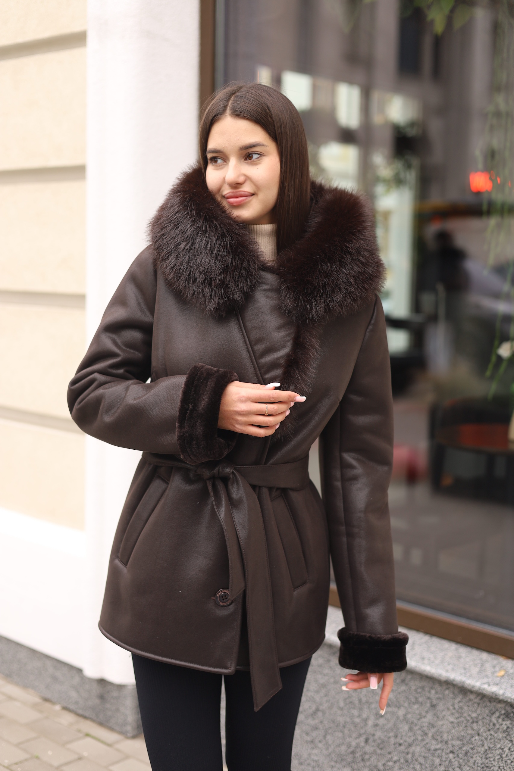 Зимняя дубленка Mila Nova Д-244 кор,шоколад