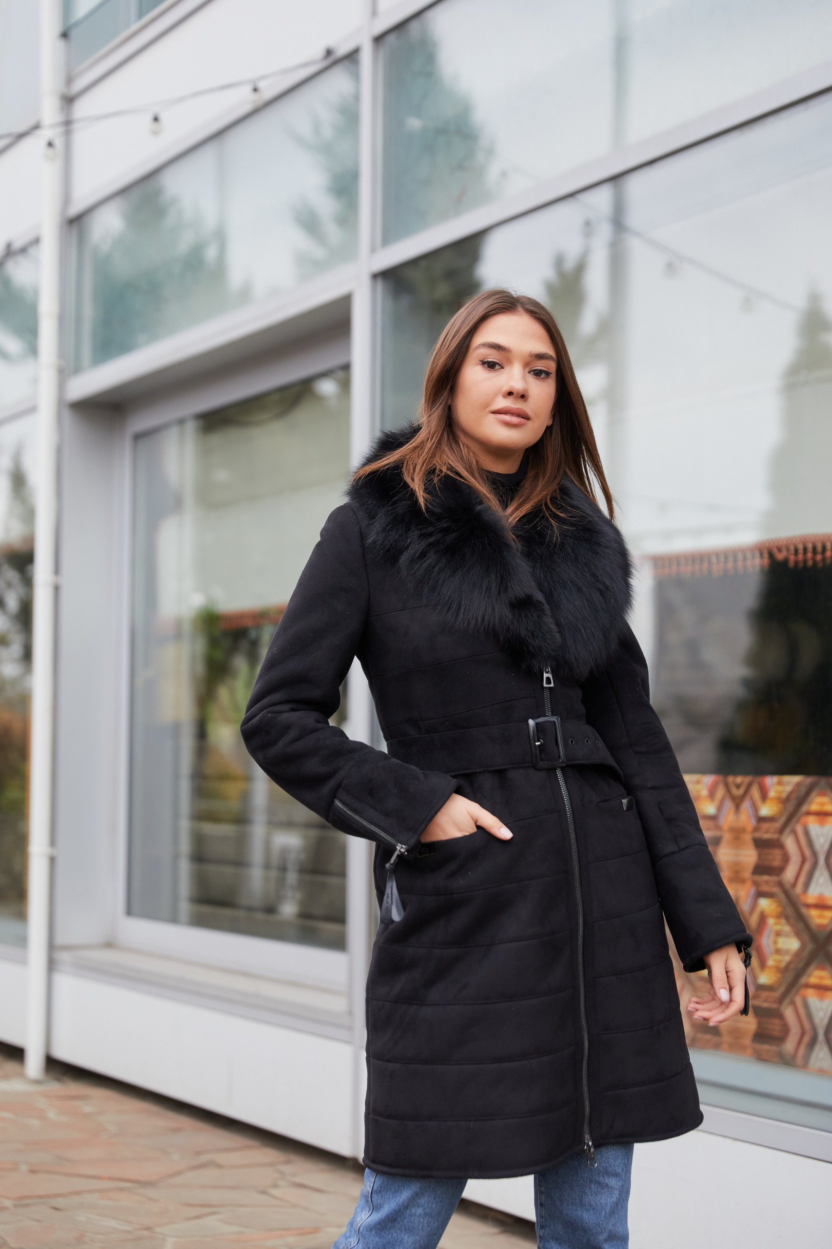 Дубленка евродлины из высококачественного искусственного дубляжа