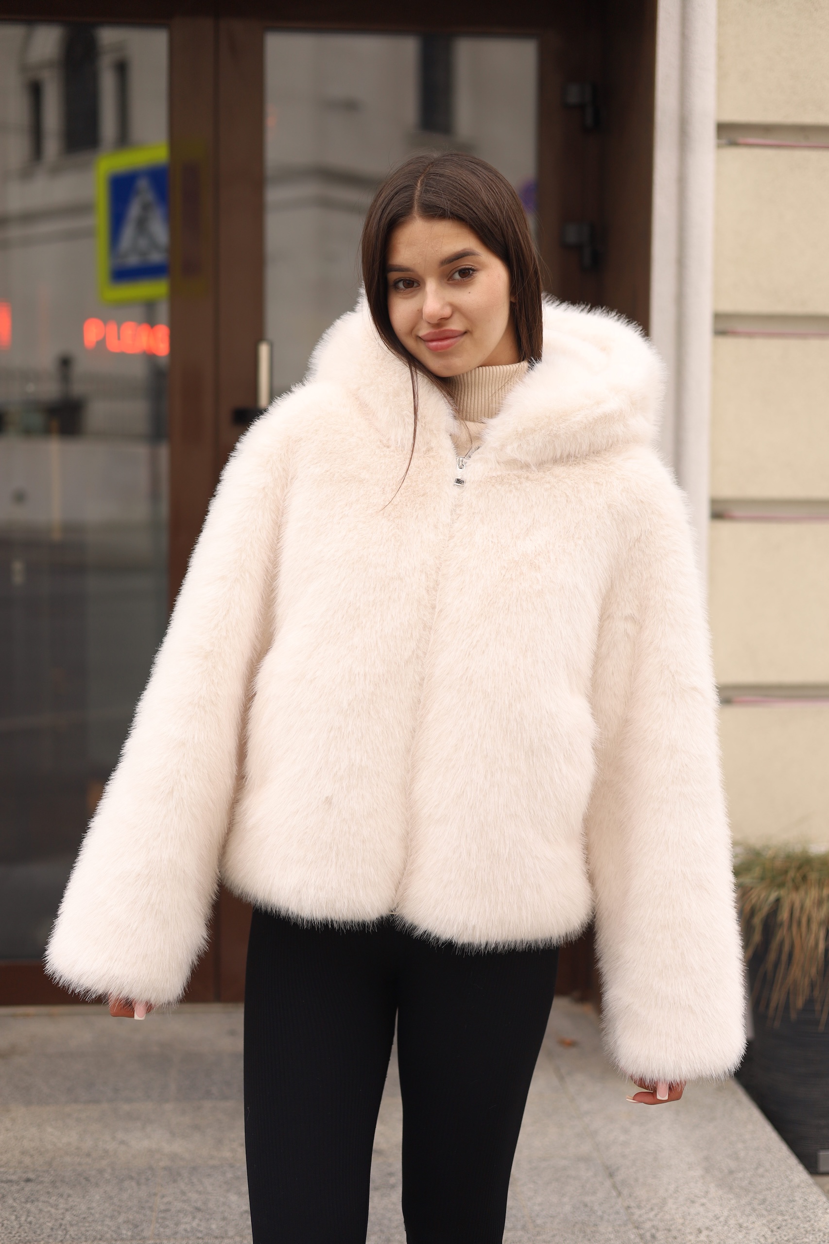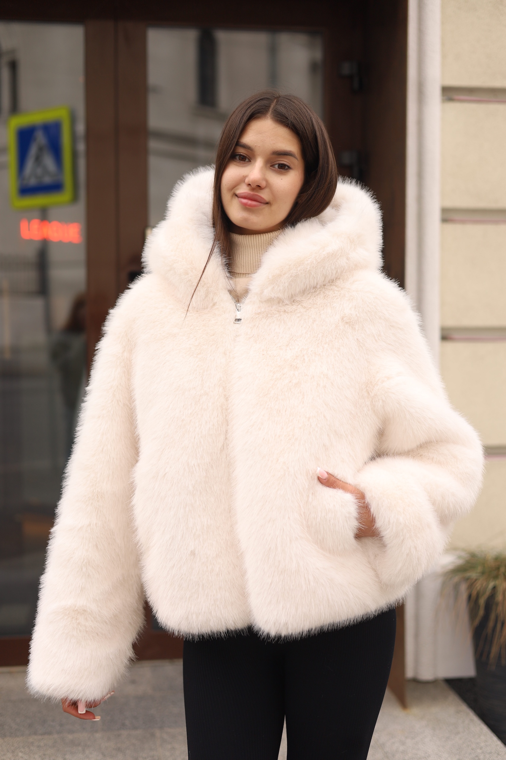 Короткая зимняя шубка из эко меха с капюшоном для стильных образов этой зимой!