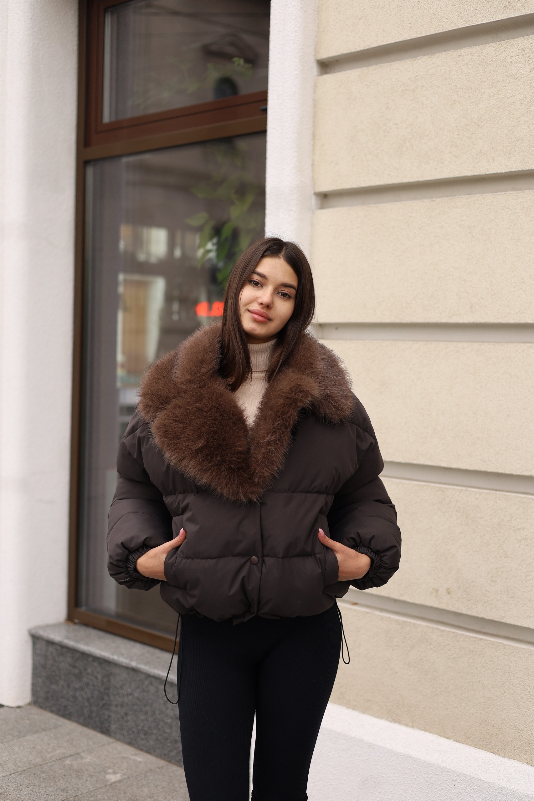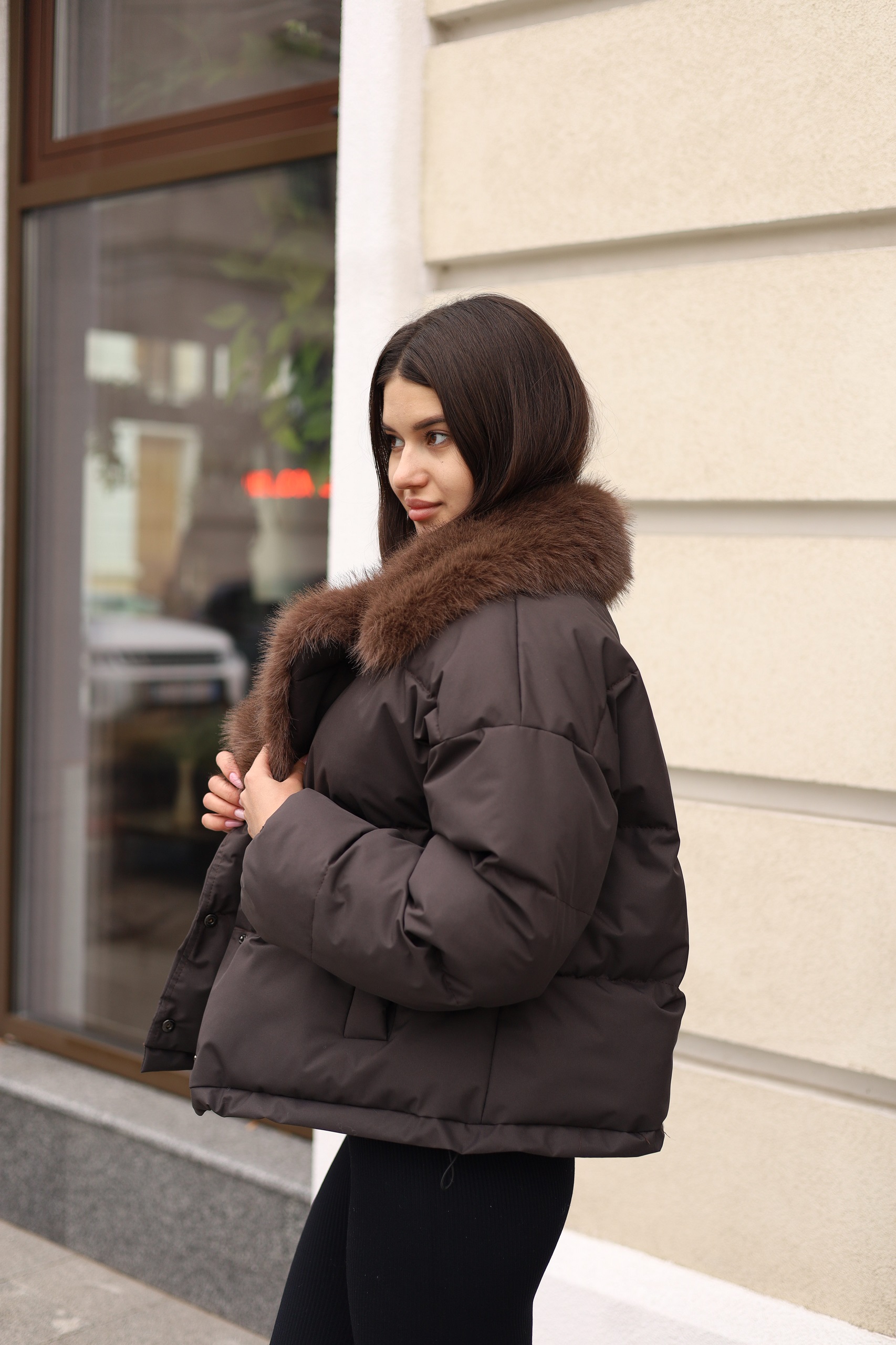 Короткая куртка из стеганной плащевой ткани и эко меха высокого качества.