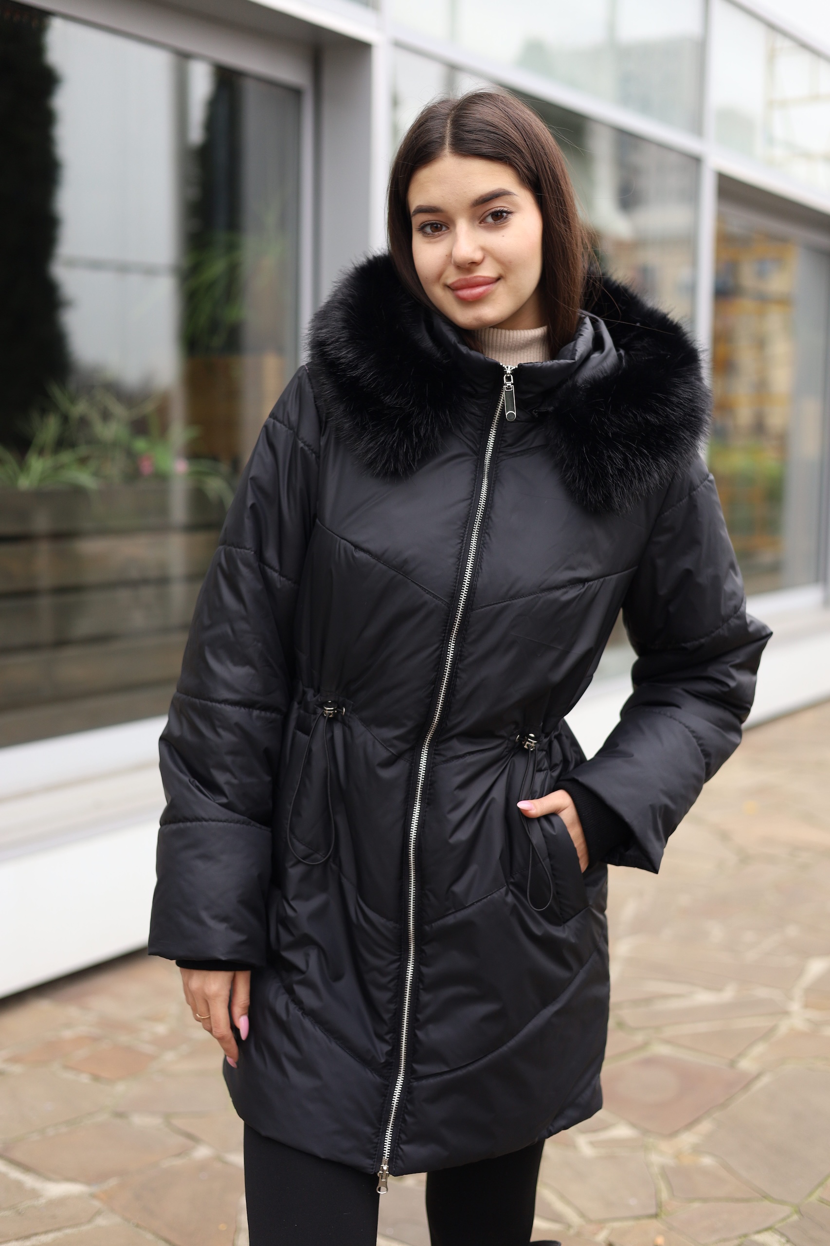 Выполнена из плащевой ткани, на капюшоне мех из эко-меха песца.