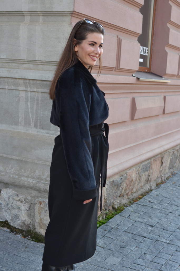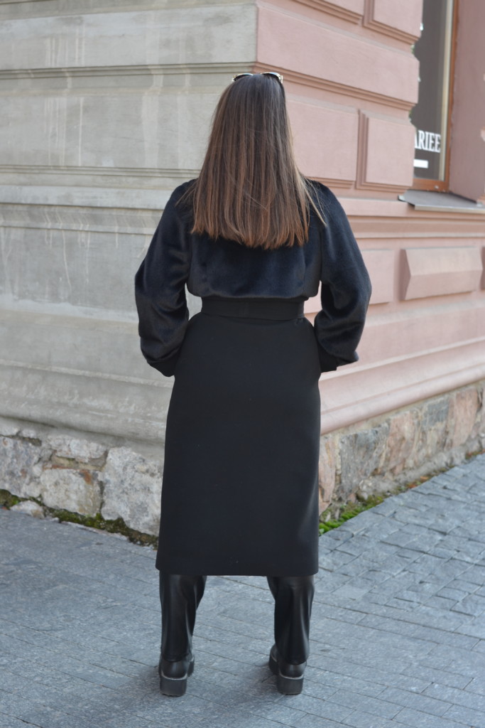 Модель выполнена из кашемира, в комплекте идет пояс, который идеально подчеркнет силуэт.