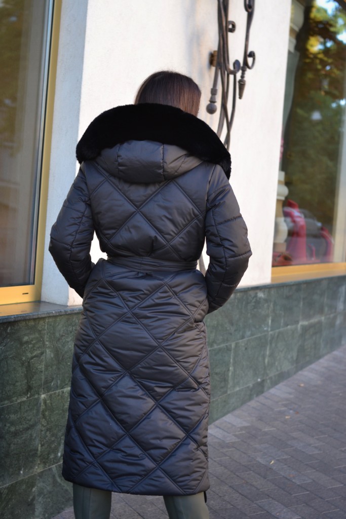 Зимнее стеганое пальто с водоотталкивающей плащевки и эко меха под лисичку на капюшоне
