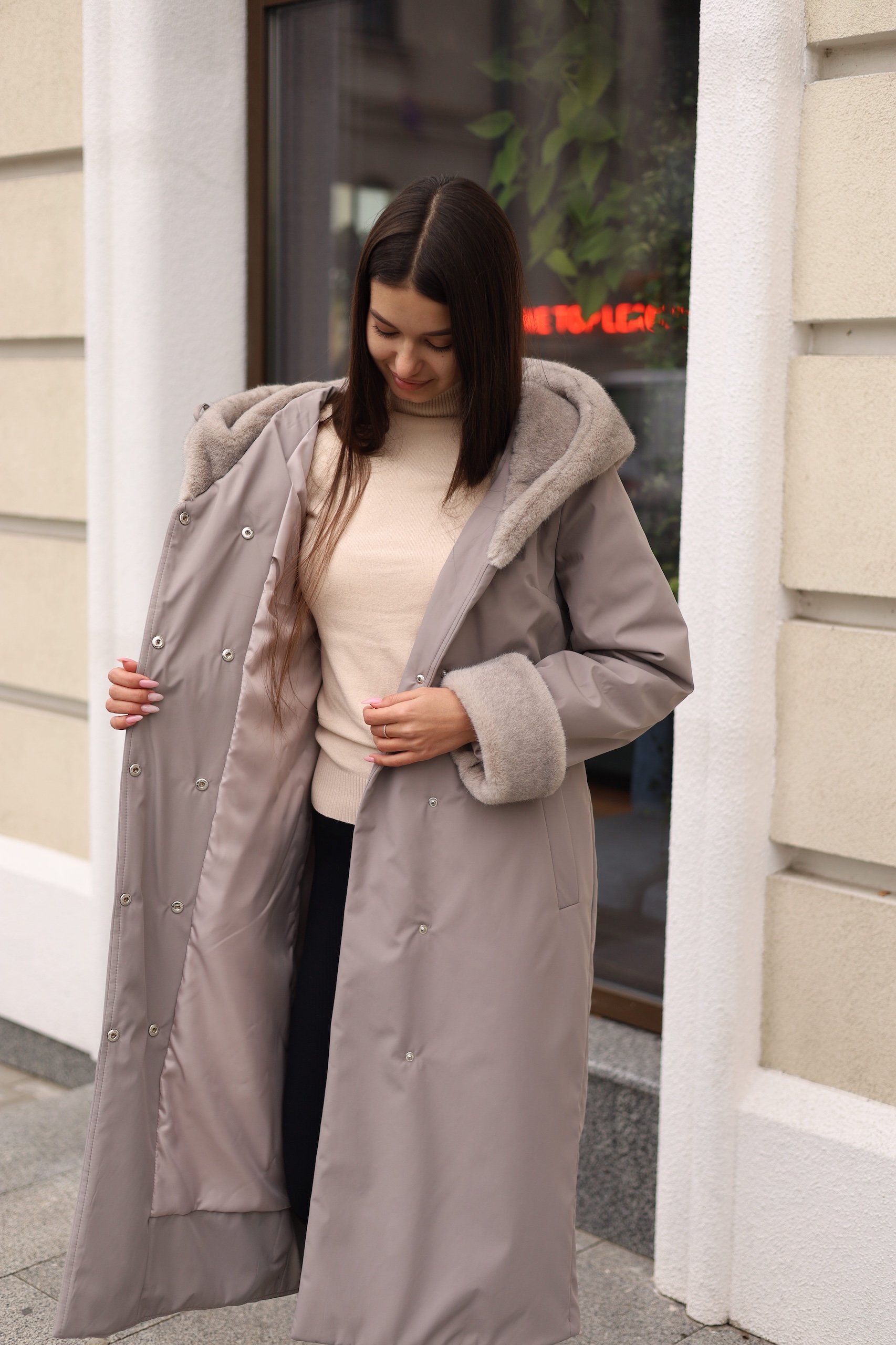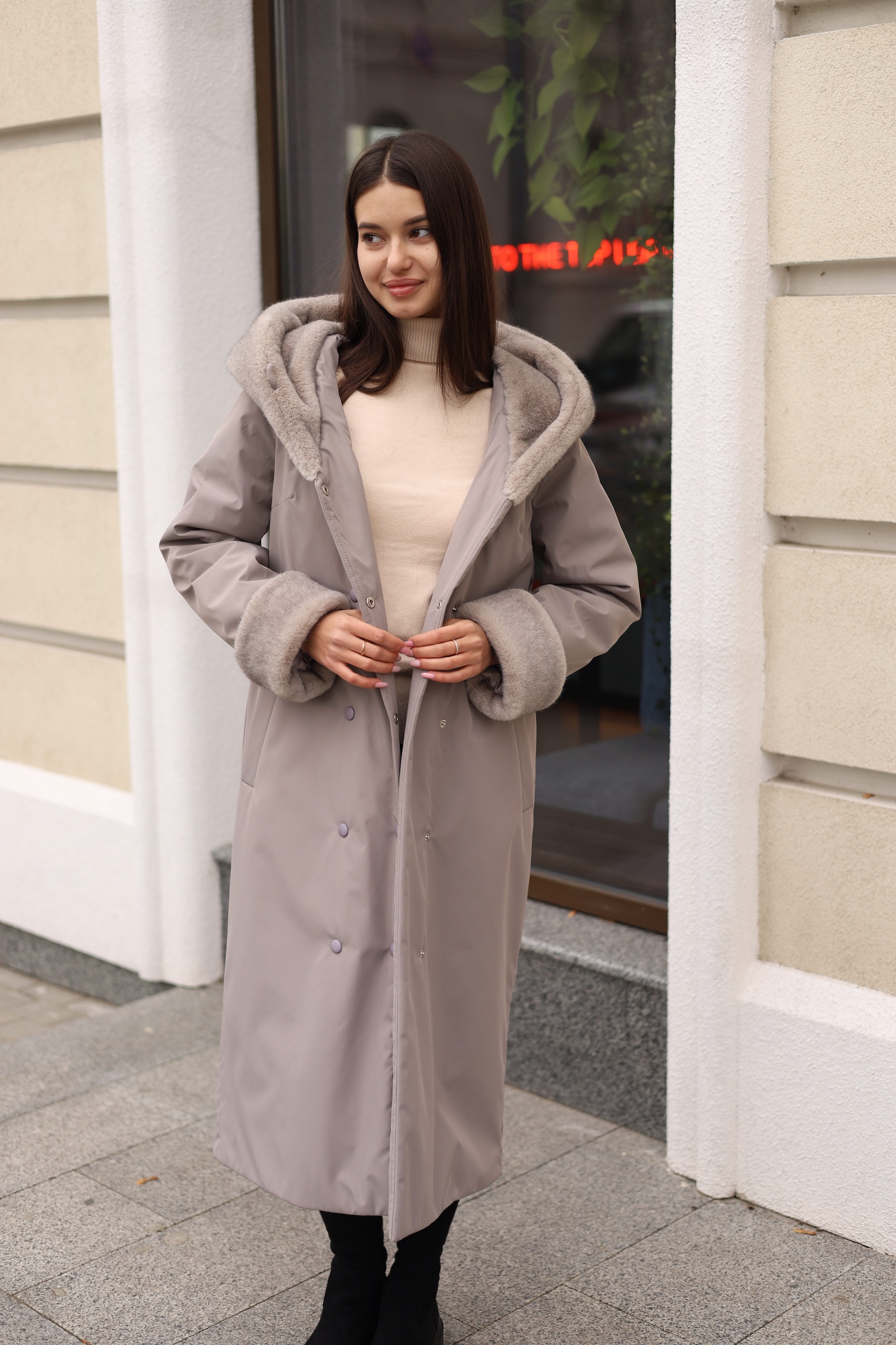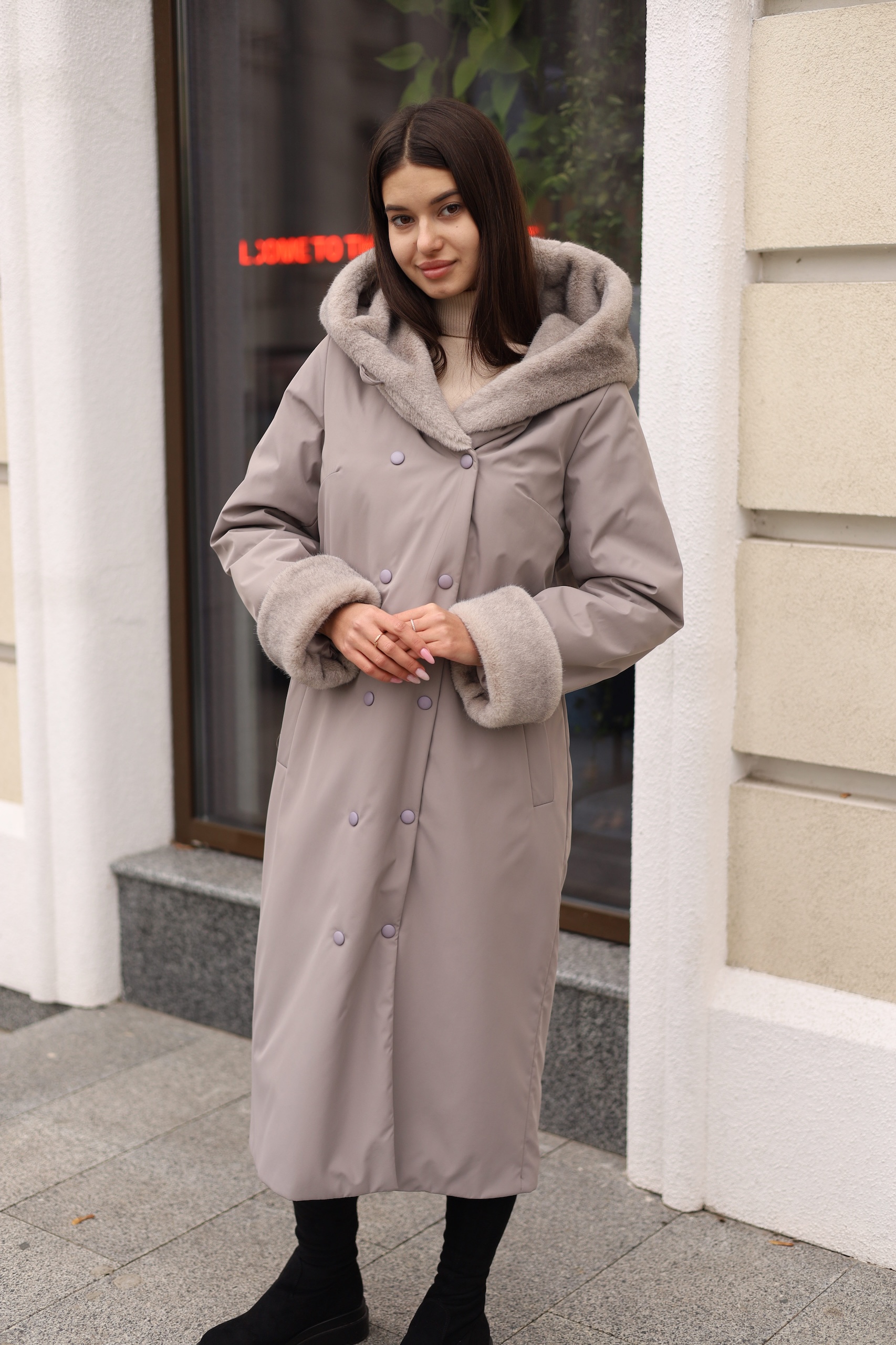Зимнее пальто с водоотталкивающей плащевки и эко меха