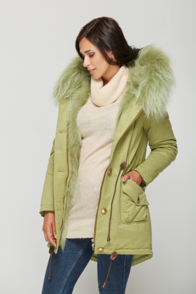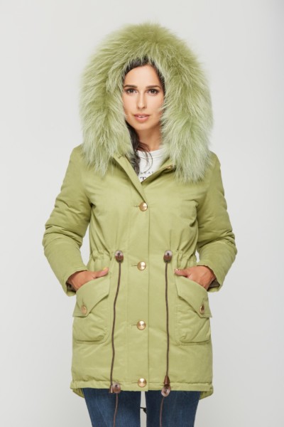 Незнімний капюшон зі штучного хутра, застібка на стильні ґудзики.